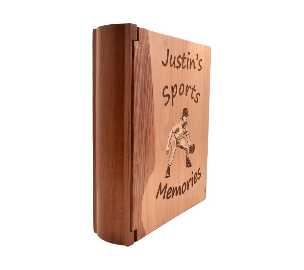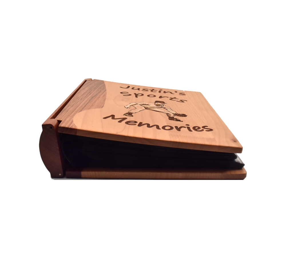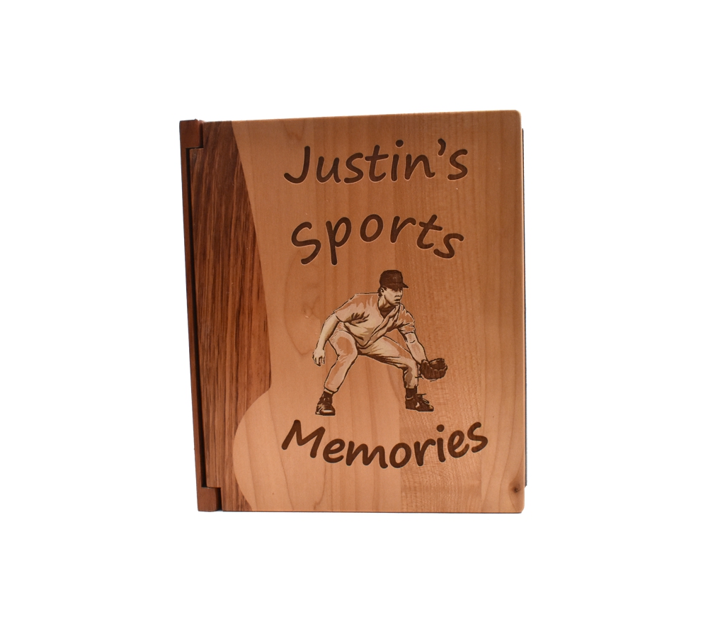 This personalized photo album is perfect for displaying all of your children’s proud athletic moments. Create a memento that allows you to show off your children for years to come, remembering these special times in their lives. Crafted of solid maple and rosewood, our wooden photo albums will last for years and retain their beauty to become family heirlooms. An engraved wood picture album will make a beautiful personalized wood gift for any athlete in your life.