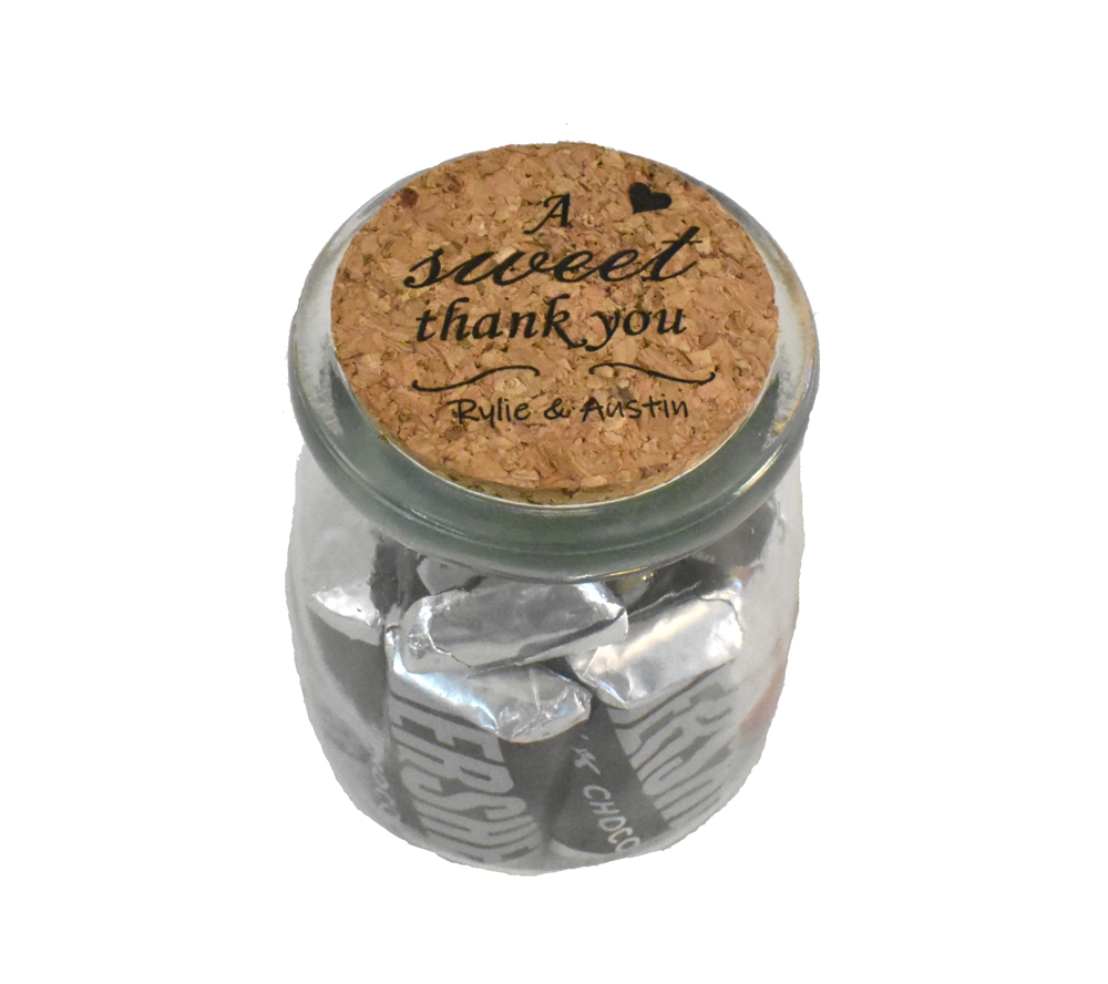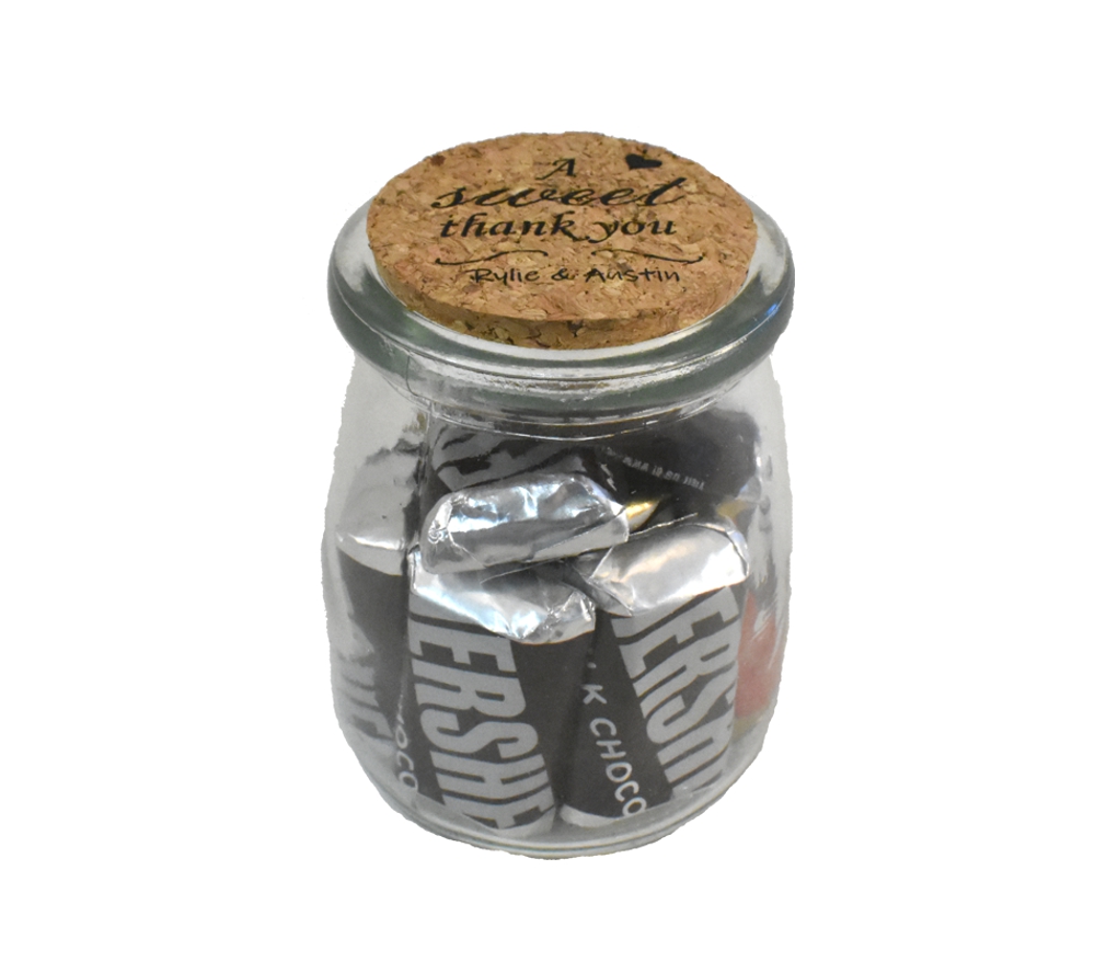 Your wedding day would not have been the same without your guests’ presence, and sending them home with a thoughtful wedding favor is a great way to say thank you. Use this small wedding favor glass jar with cork lid to gift your guests with a personalized wedding favor. This small wedding favor glass jar is versatile and can be used to hold any small items you wish to give your guests as a sweet thank you. Preset quantity discounts make purchasing these small wedding favor glass jars simple.