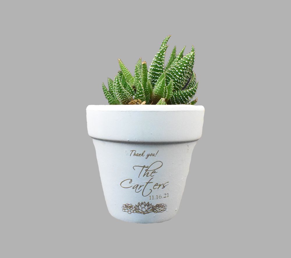 A white mini plant pot from Whitetail Woodcrafters is an elegant, yet personalized wedding favor that your guests will be thrilled to receive. These mini plant pots are a fun way to say thank you to your guests who were an integral part of your special day. Order our mini plant pots in preset quantities to recieve the best price for any wedding size.