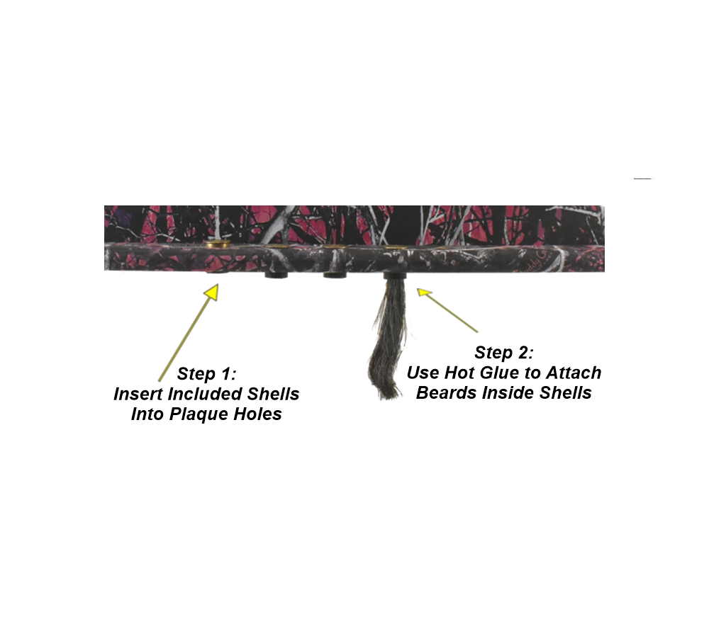 Display all of your trophy turkeys on a camo turkey beard plaque from Whitetail Woodcrafters. All of our taxidermy plaques are handcrafted in our shop and hydro dipped in a detailed camo pattern to create a beautiful taxidermy display. This turkey taxidermy mounting plaque will exhibit 11 beards so you can continue to build up your display as you keep bringing home more turkeys.