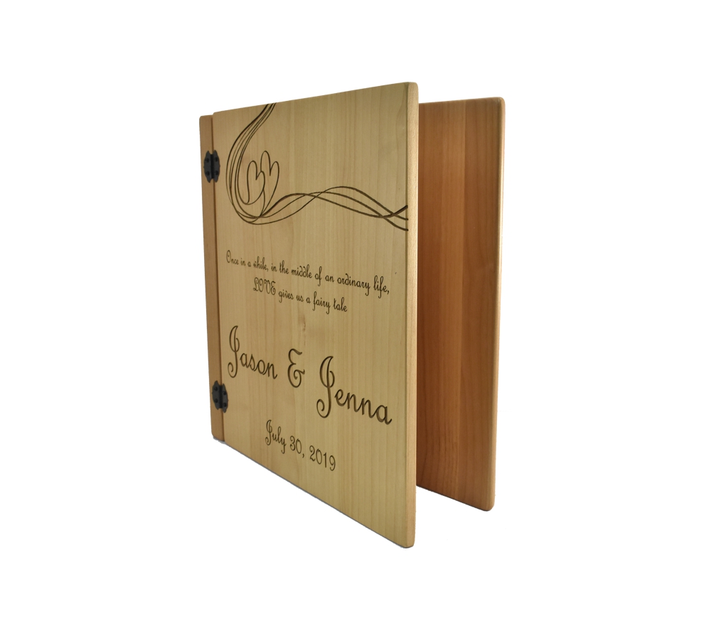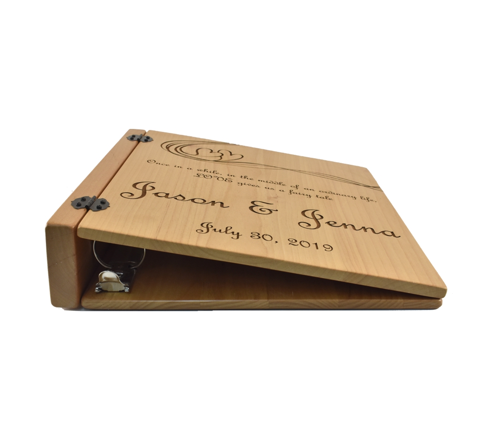 Show your spouse just how much they mean to you with a beautiful custom engraved photo album from Whitetail Woodcrafters. Our personalized photo albums are crafted from solid alder, so they will last a lifetime. All of our custom engraved wooden photo albums feature a standard 3 ring binder insert that can hold any 8.5″ x 11″ page. This allows you to make a completely custom album, scrapbook, guestbook, or a mixture of these pages for a one of a kind display. We have a variety of sizes of page inserts available for purchase with your album as well.