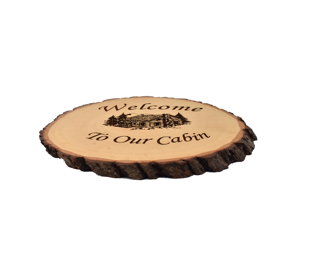 The Welcome to our Cabin live edge oval sign from Whitetail Woodcrafters is a unique way to decorate your cabin and it makes a great extra item to sell in a taxidermy showroom. These laser engraved wood signs are handcrafted in our shop from solid basswood for a quality and character you won’t find anywhere else.