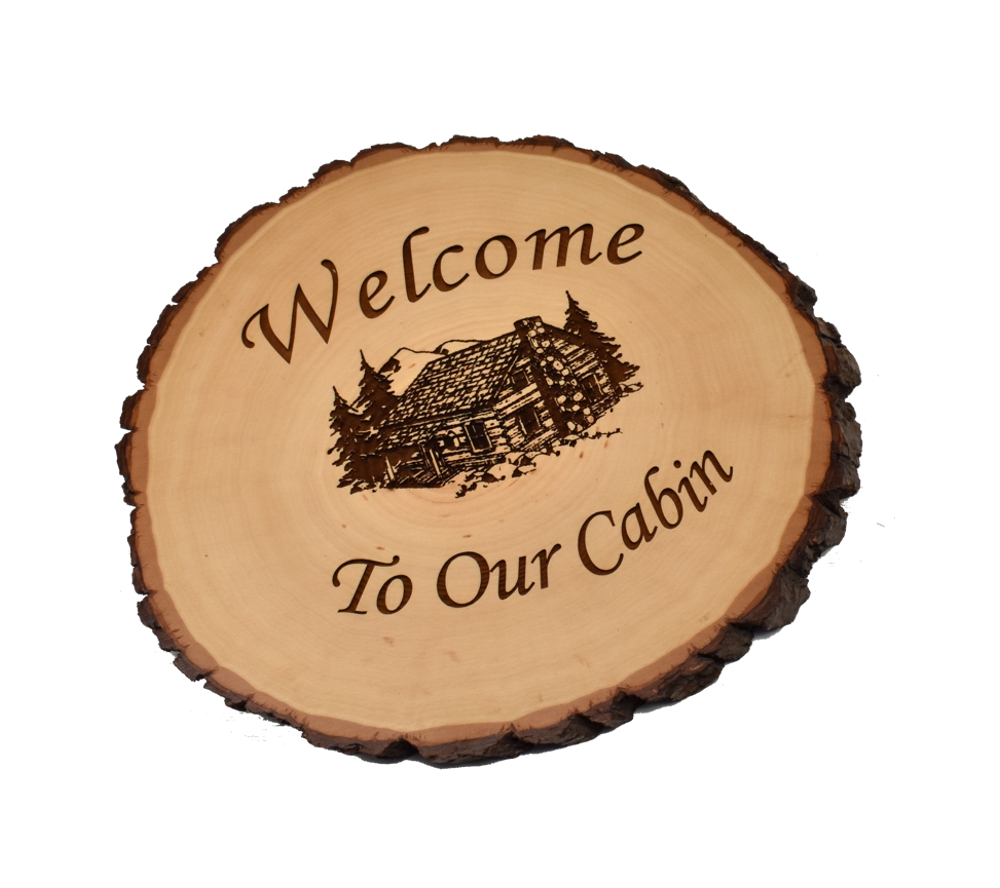 Welcome to our Cabin Live Edge Oval Sign