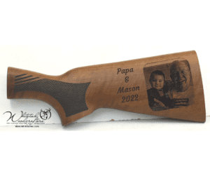 Joshua recently requested an engraving on his gun stock. Here’s what he had to say about his order. “Whitetail Woodcrafters did an amazing job on my son’s gun stock. They responded quickly with answers to any questions I had, most of the time on the same day. The engraving was absolutely phenomenal and would definitely recommend them to anyone looking into getting some engraving done.”
